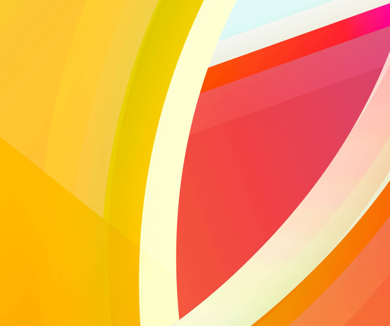 Overlapping curved shapes fill the composition with bright, solid colors. A gradient of orange and yellow provides depth to the lower portion of the image.