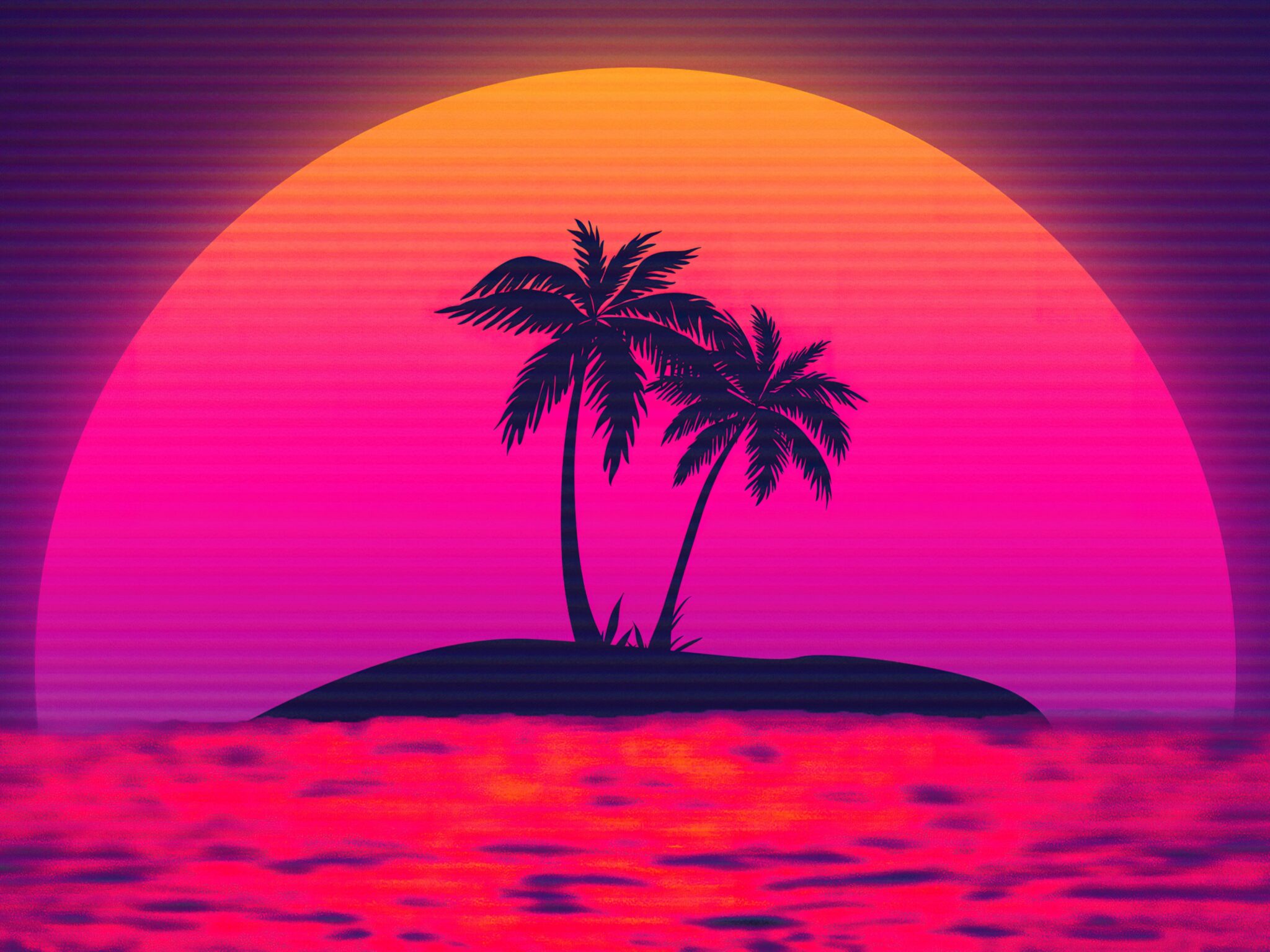 Palm Trees Sunset | Retro Synthwave Desktop wallpaper 4K