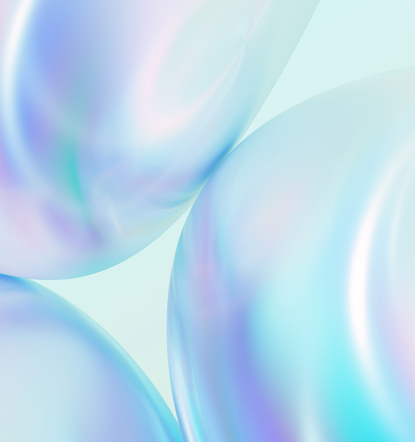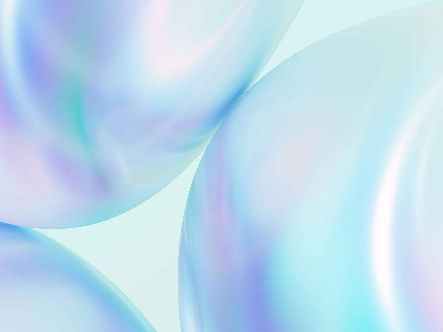 Pale blue and lavender abstract shapes fill the frame, overlapping in a close composition. The surfaces have a smooth, pearlescent sheen with subtle color gradients and reflections.