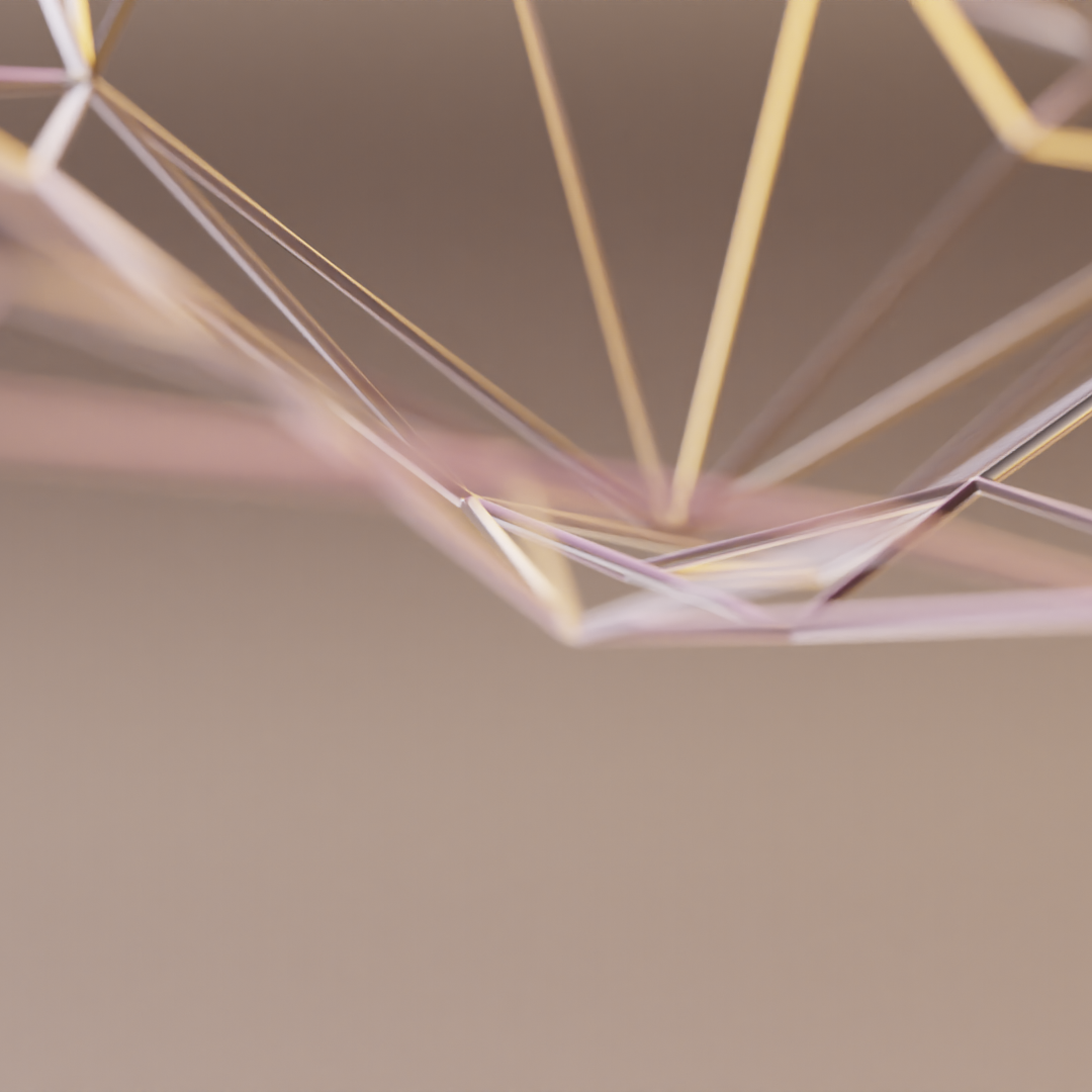 A digital web of interconnected lines and nodes fans out across a warm brown canvas in soft pinks, purples, and yellows. The mood is quiet a…