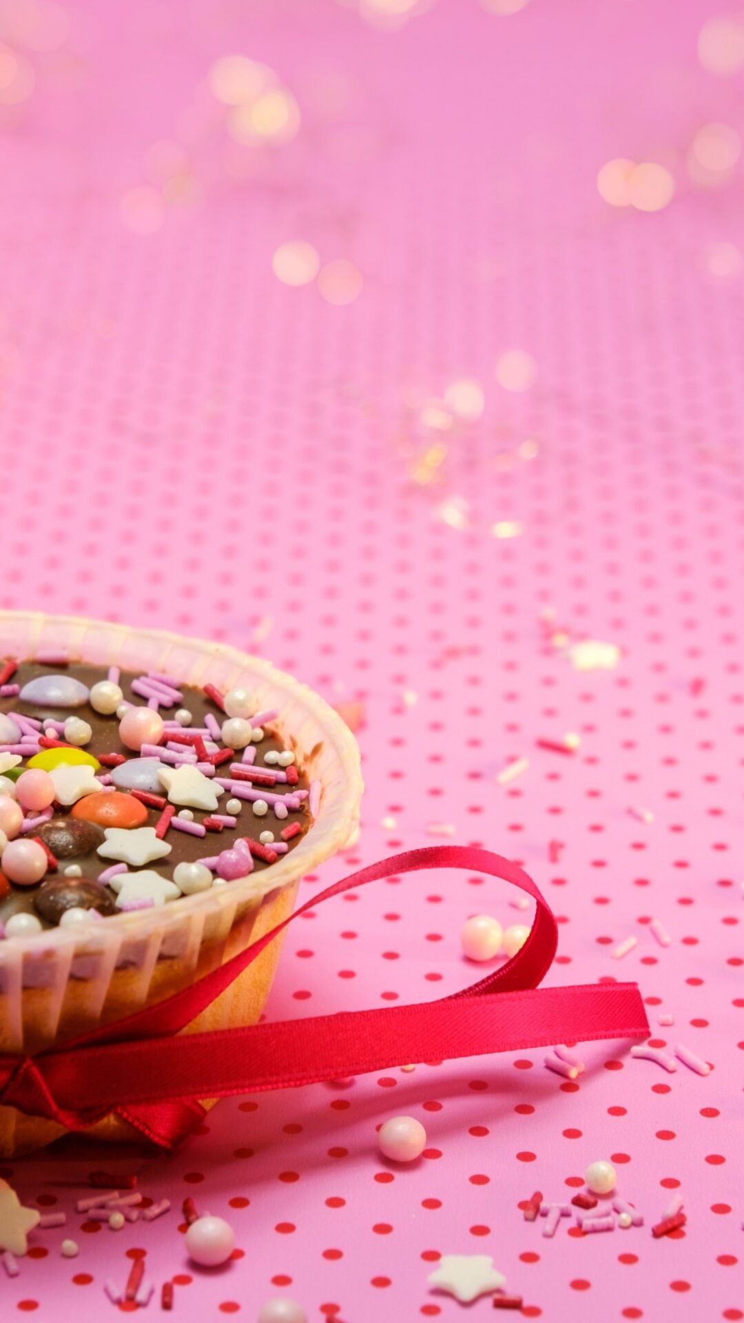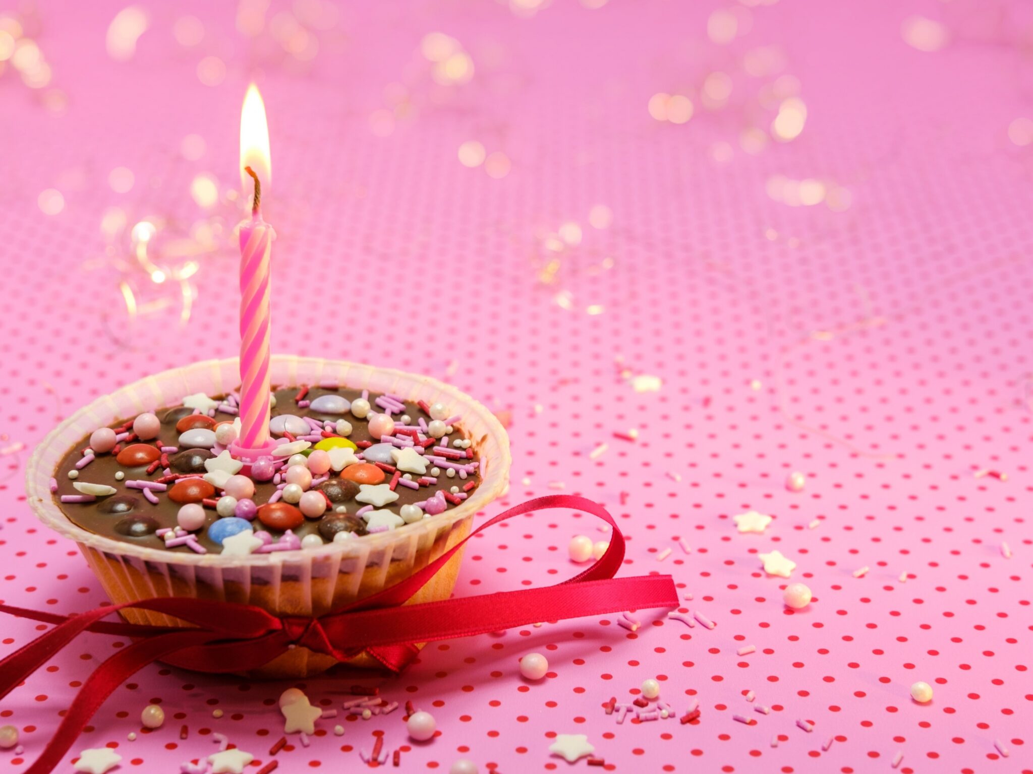Pink Cupcake Candle 4K Desktop | Muffin Sprinkles Wallpaper