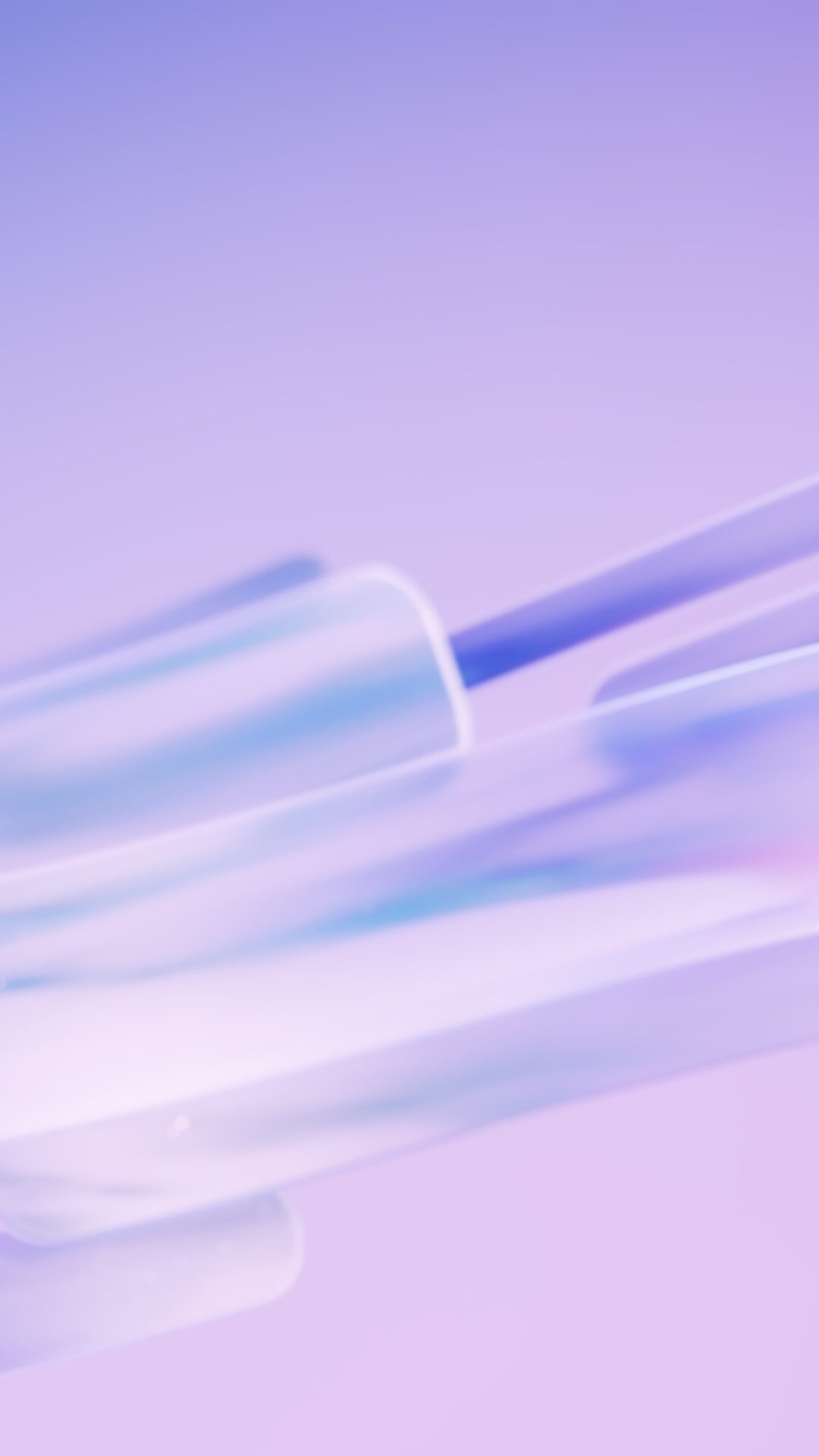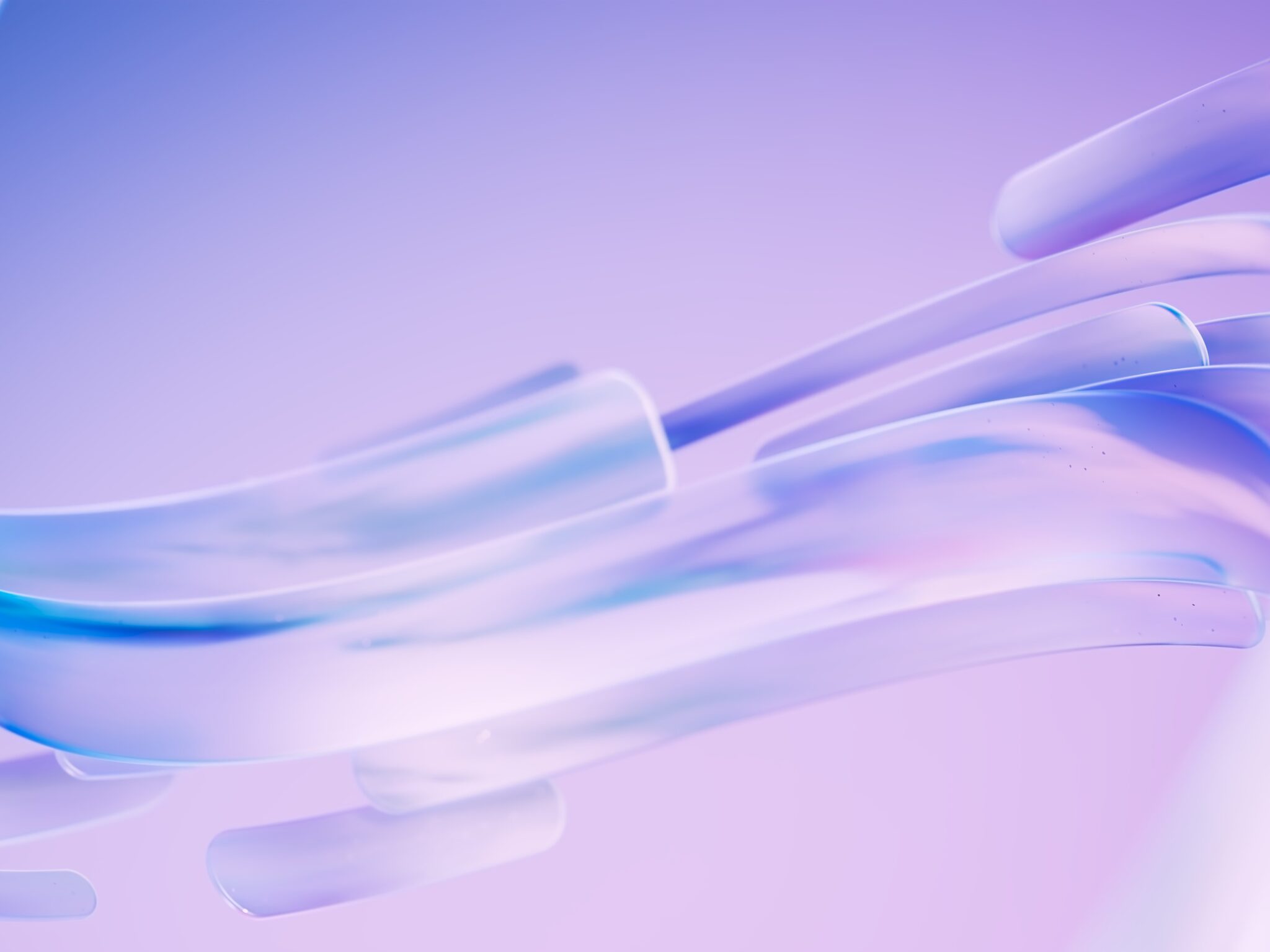 Smooth flowing ribbons of lavender, soft blue and pale violet twist through a dreamy purple-pink background with a glossy translucent look. For 4K monitors, this gradient wallpaper adds a clean modern vibe to your desktop.