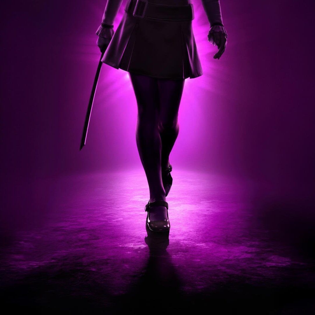 Purple-Hued Female Silhouette with Cane Desktop Wallpaper 4K