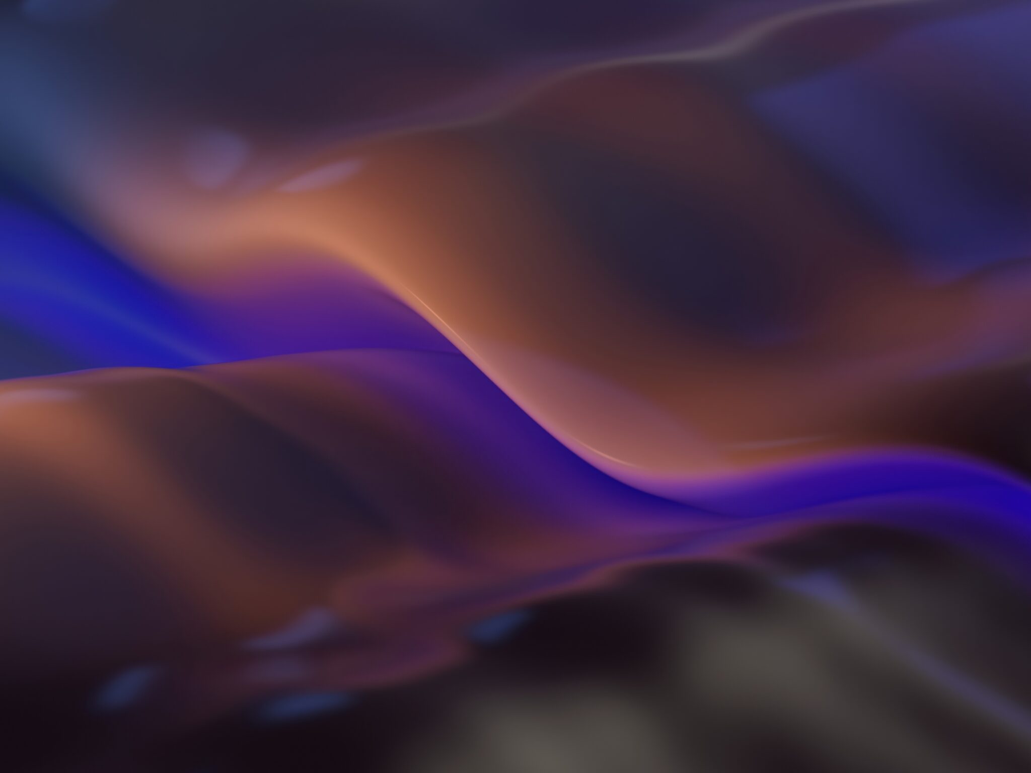 Flowing silk-like waves in deep purple and vivid blue with warm copper and orange highlights running through the curves. For 4K monitors, th…