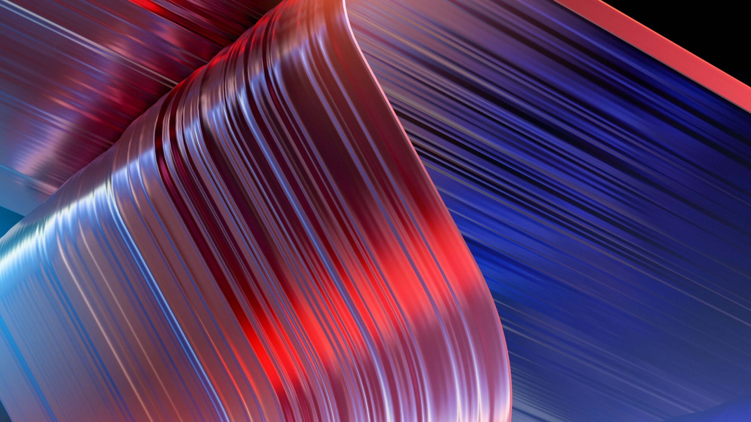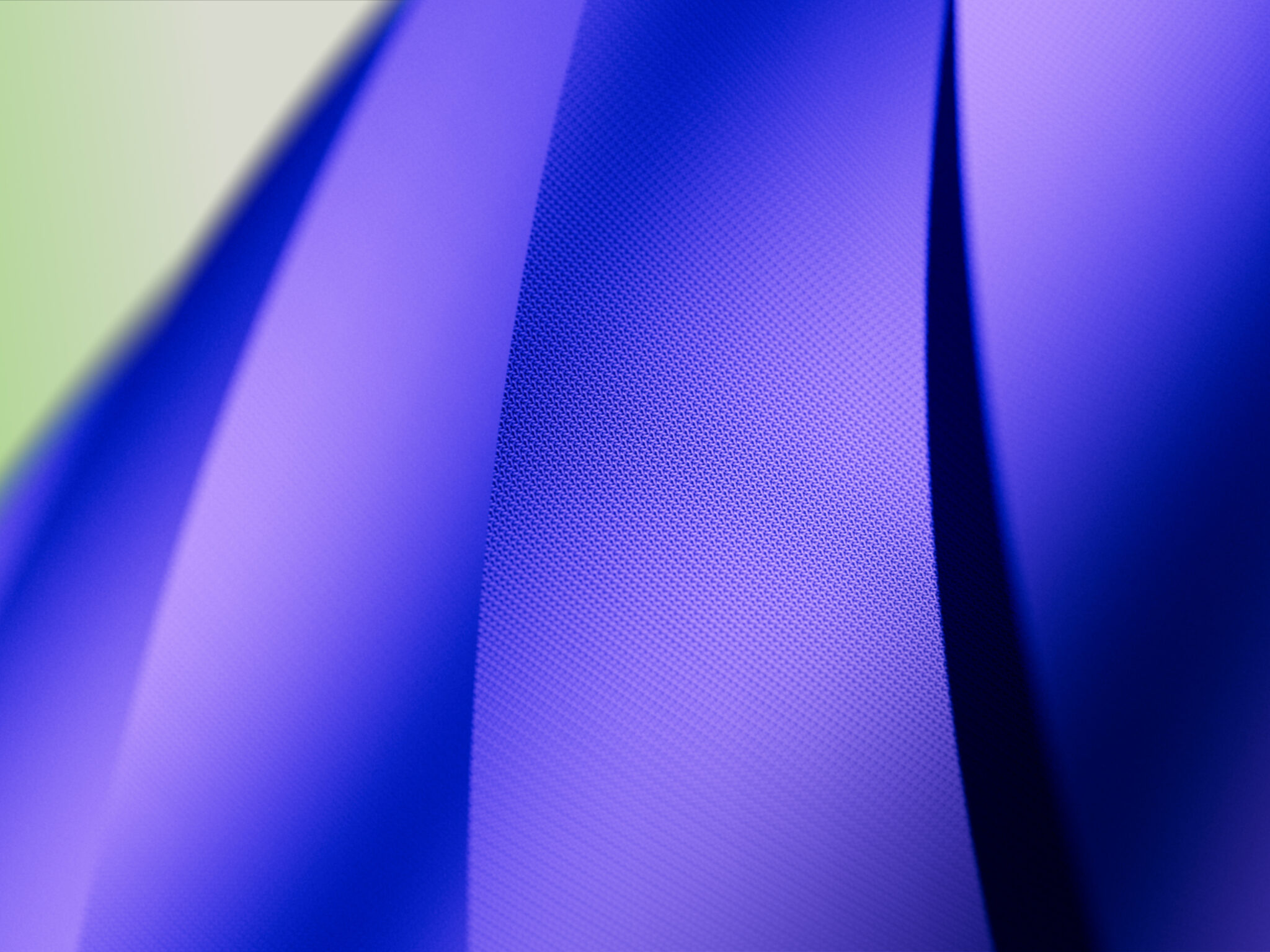 Soft violet and indigo fabric folds create these sweeping curved shapes against a pale green background, with a subtle woven texture visible up close. For 4K monitors if you want something abstract and calming on your desktop.