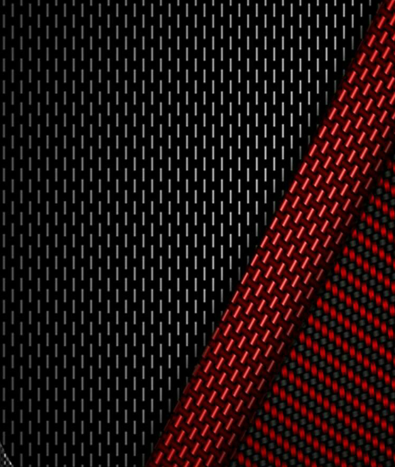 A dark textured background is split diagonally with a red carbon fiber pattern. The contrasting red has a glossy sheen, while the dark area displays a subtle dotted texture.