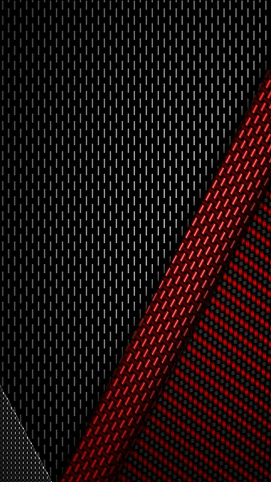 A dark textured background is split diagonally with a red carbon fiber pattern. The contrasting red has a glossy sheen, while the dark area