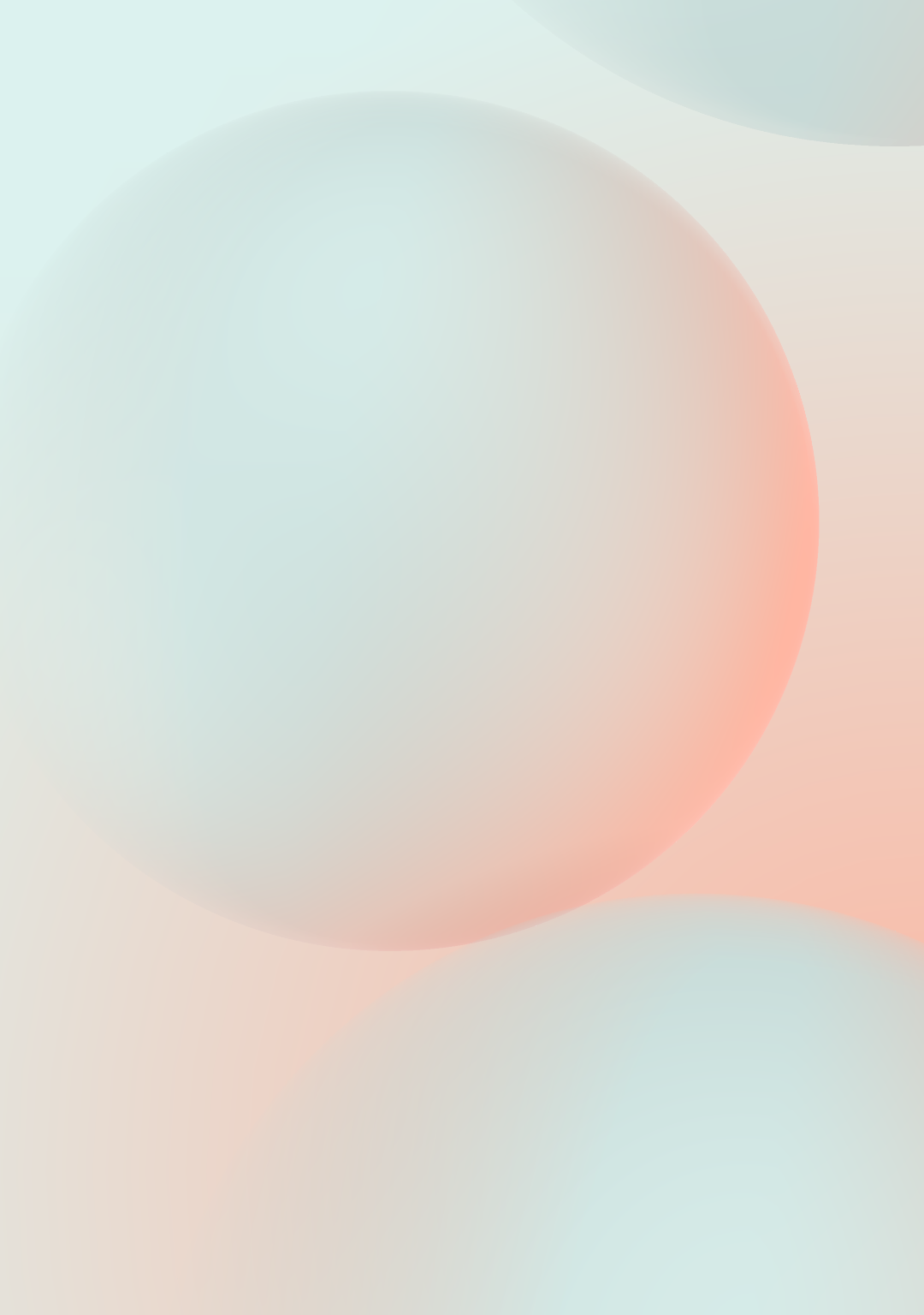 Translucent rounded blobs in pale blue, creamy peach, and dusty rose overlap softly like light diffused through frosted glass. The gentle gl…