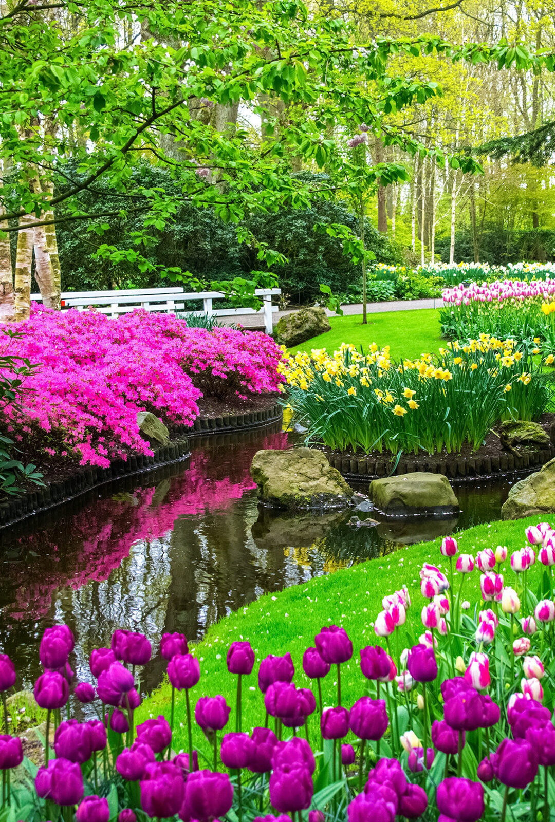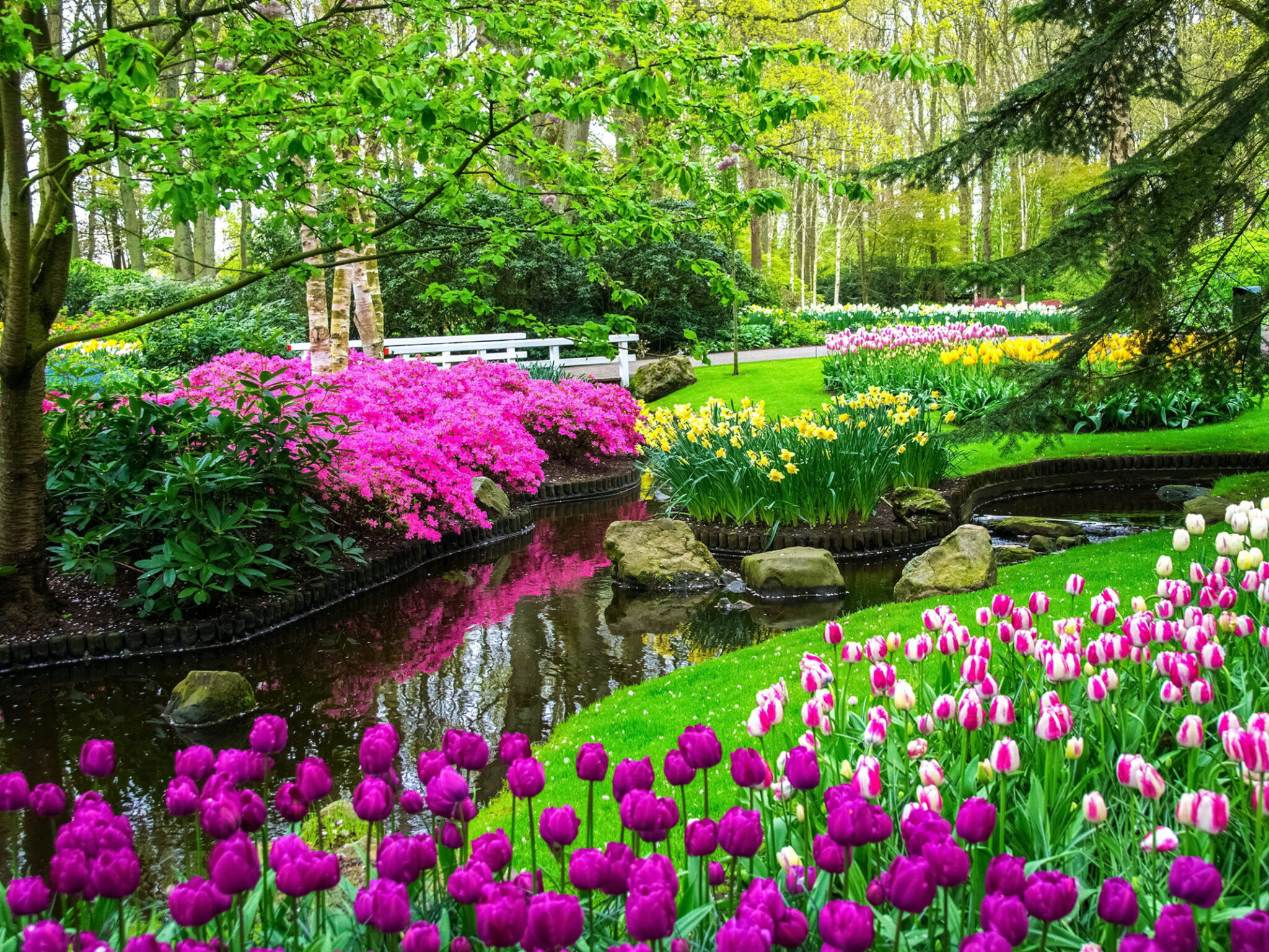 Spring Tulip Garden Stream Dutch Desktop Wallpaper 4K
