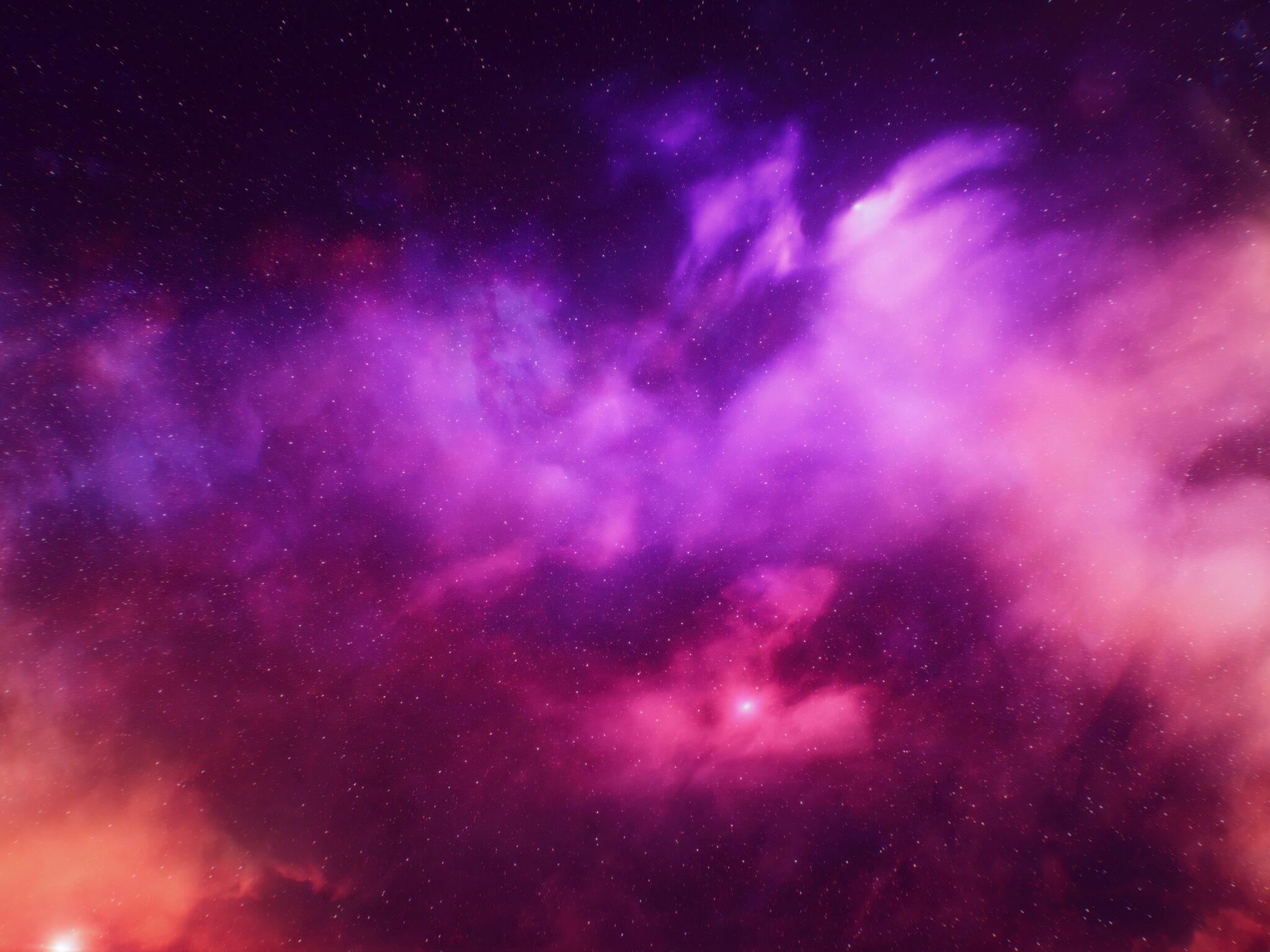 Vibrant purple and magenta cosmic clouds swirl through deep space with warm orange and pink hues illuminating the starry darkness. This celestial wallpaper brings the beauty of distant nebulae to your 4K desktop.