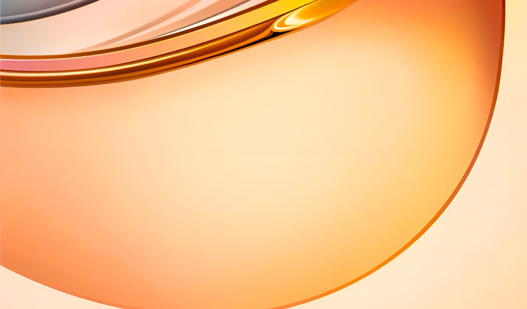 Overlapping translucent forms fill the frame in shades of teal, amber, and peach. Soft, reflected light creates subtle highlights and a smoo…