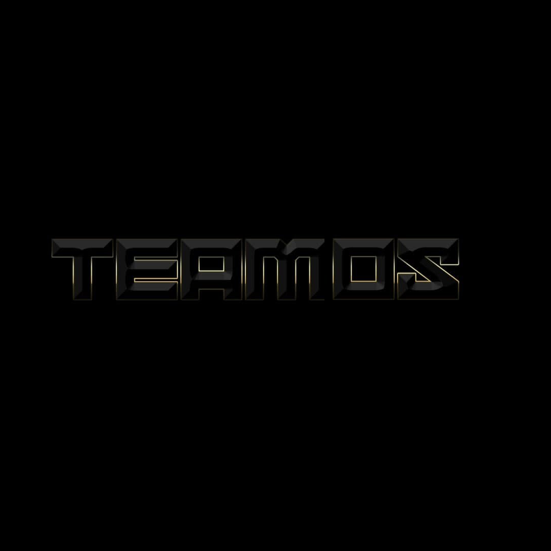 A black background with the word "TEAM OS" in metallic, futuristic font, outlined in a thin white line. The letters are raised and have a me