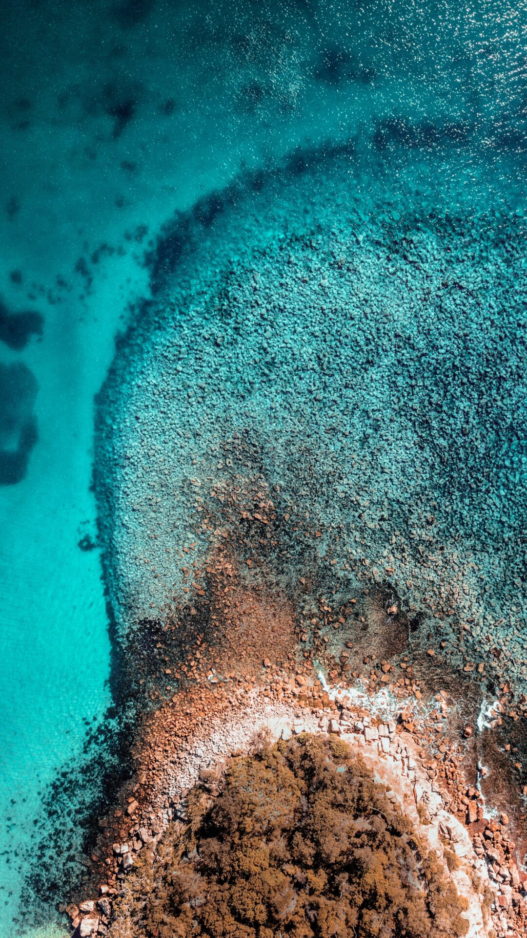 Tiny Rocky Island Turquoise Shallows Aerial iPhone Wallpaper 4K