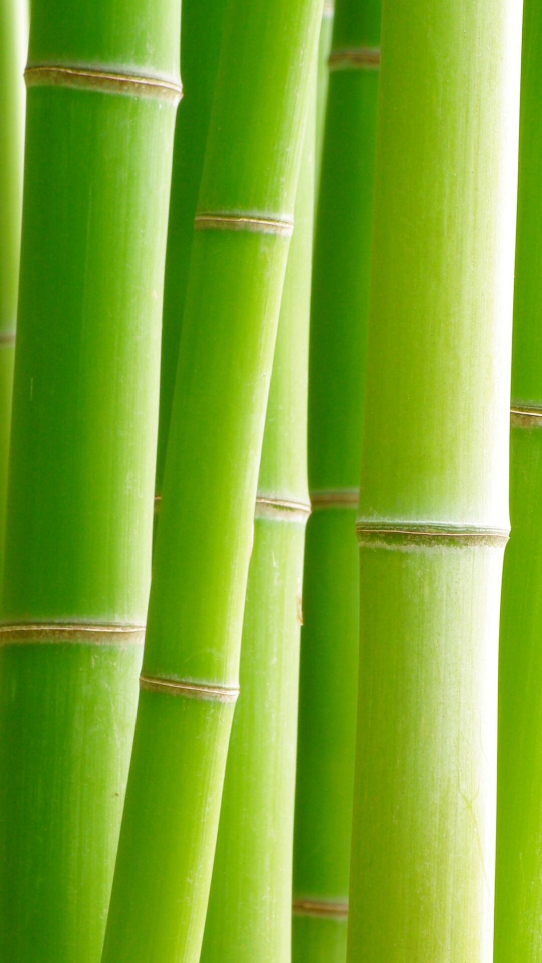Fresh bamboo stalks create a vibrant wall of bright green and lime tones with their distinctive segmented nodes clearly visible. This clean