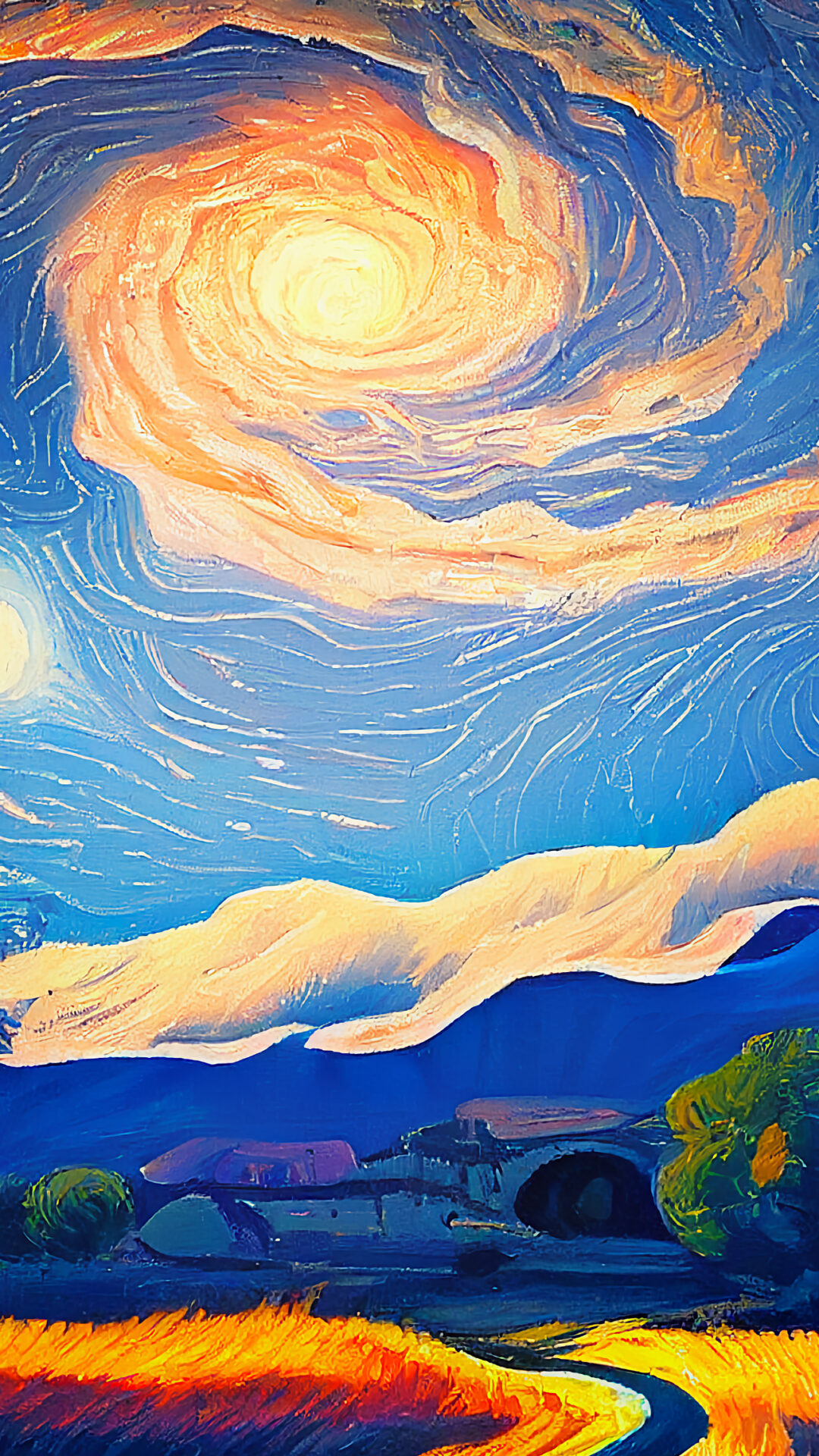 Turbulent Sky Landscape iPhone | Painted Rolling Hills