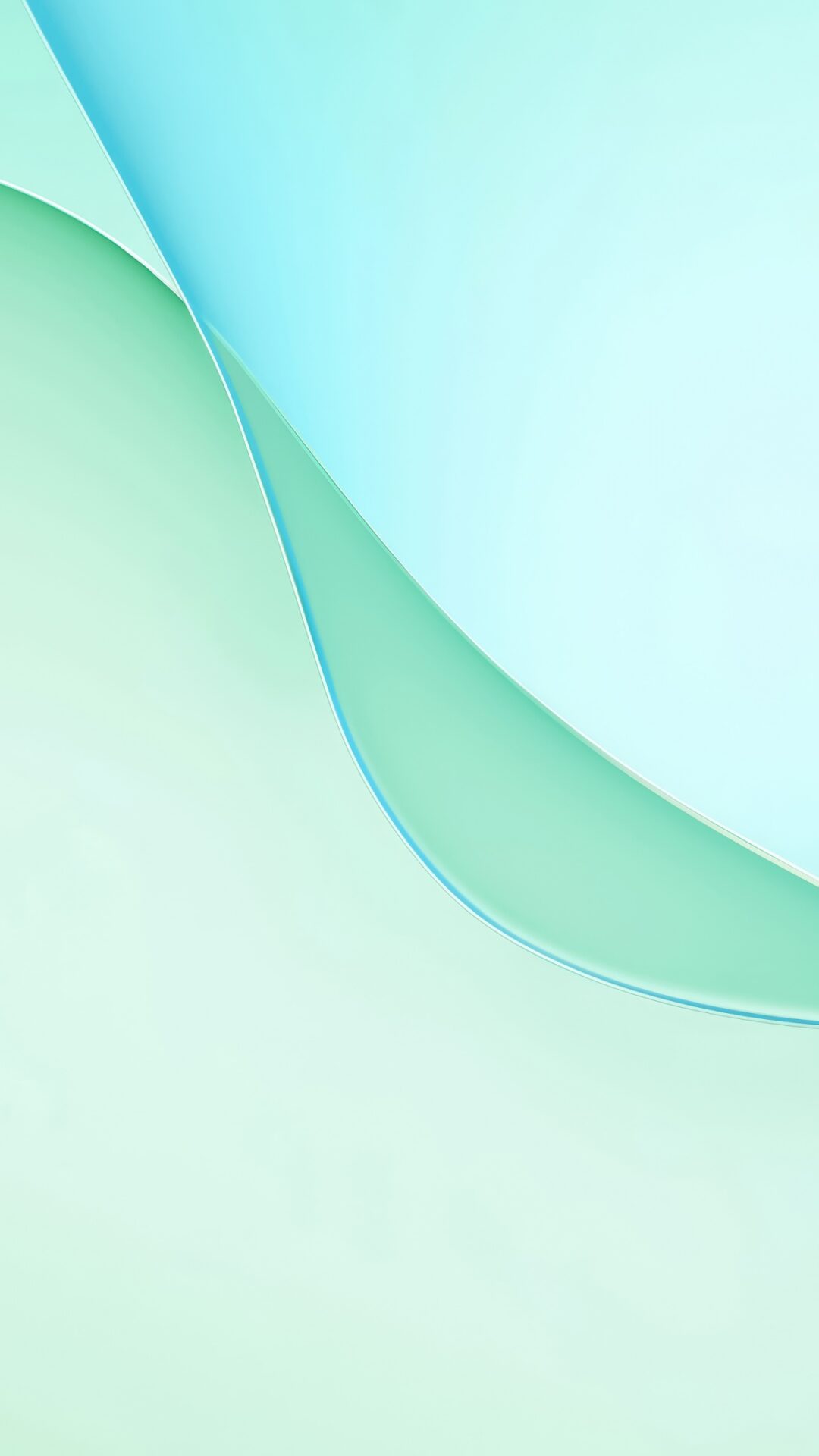 Pale turquoise and light green abstract shapes overlap against a white background. The smooth gradients create a sense of soft, diffused light and subtle depth.