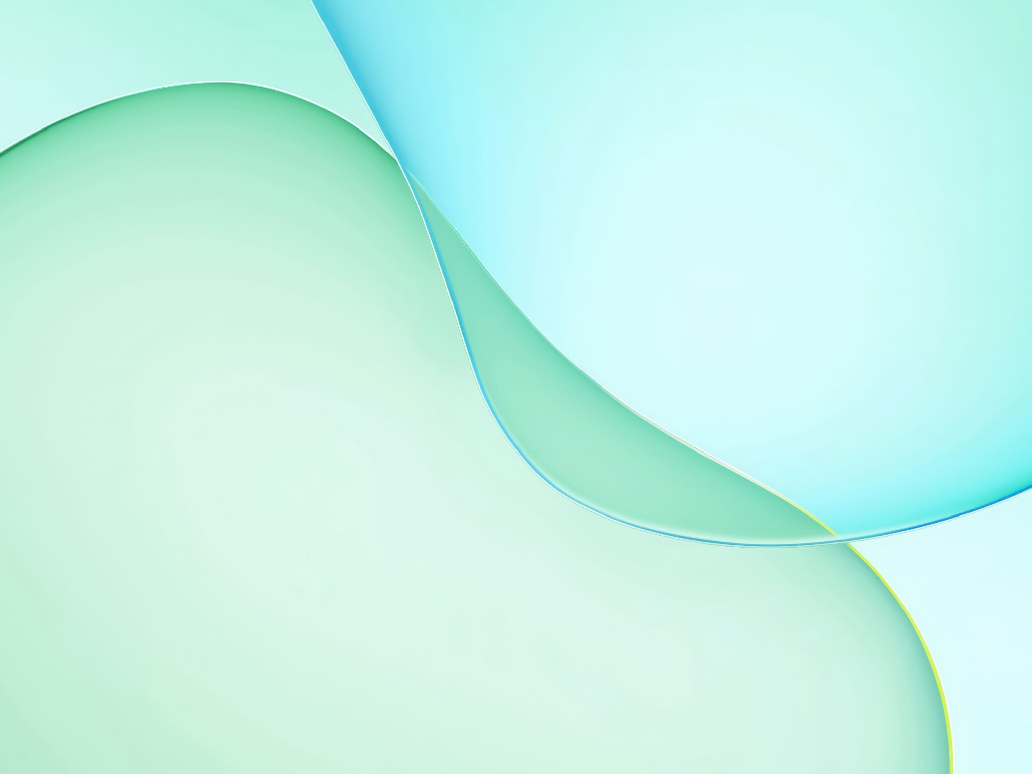 Pale turquoise and light green abstract shapes overlap against a white background. The smooth gradients create a sense of soft, diffused lig…