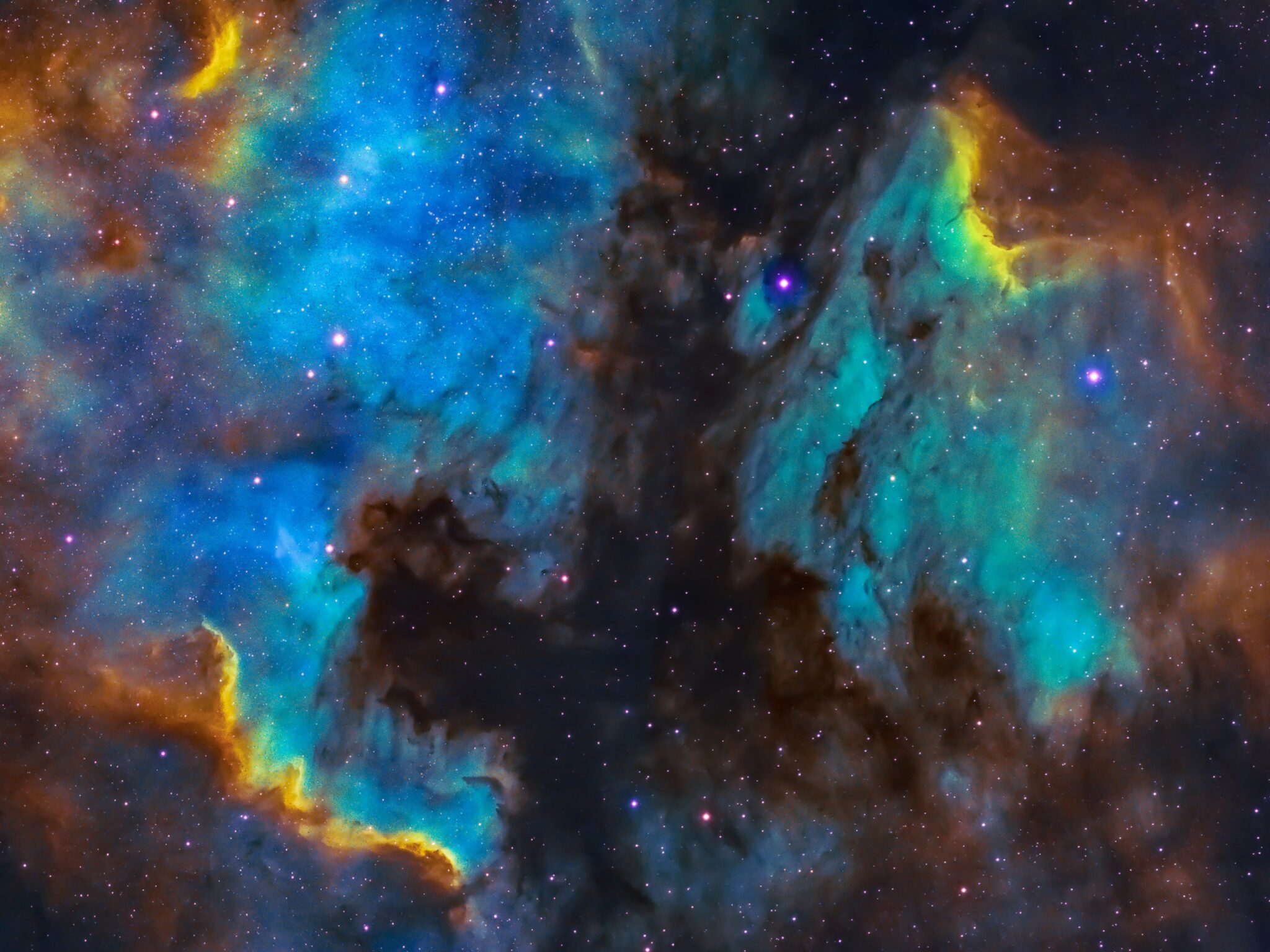 Turquoise & Gold Nebula | Space Desktop Art