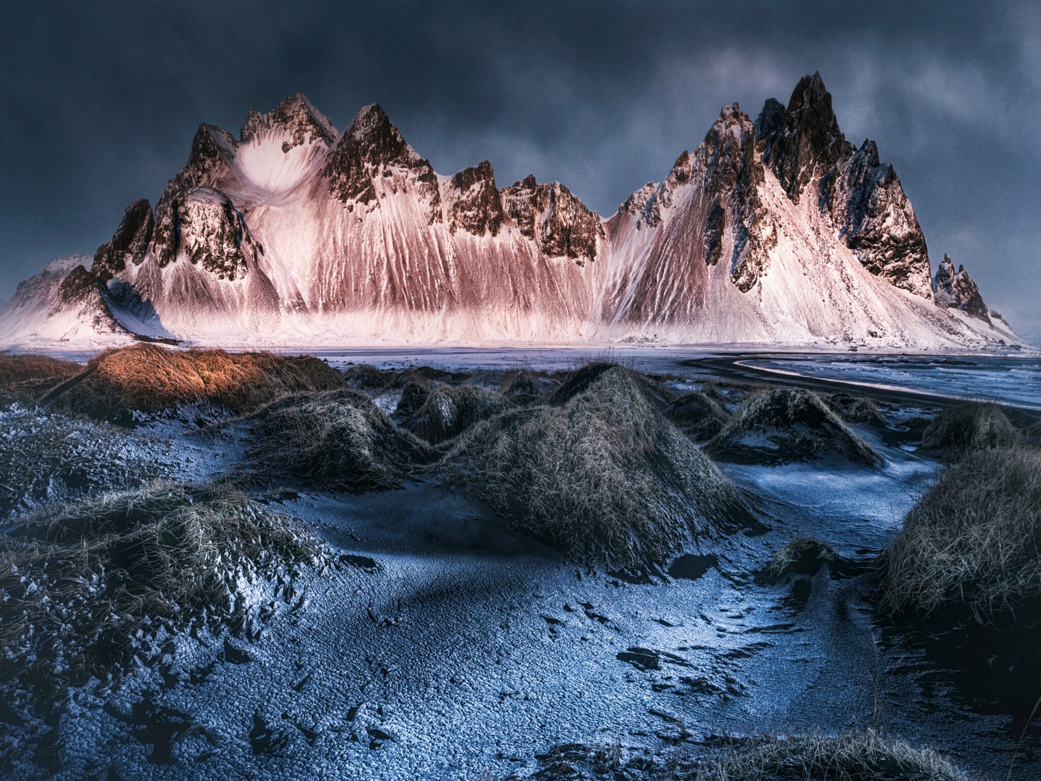 Vestrahorn Mountain Coast | Snowy Icelandic Desktop