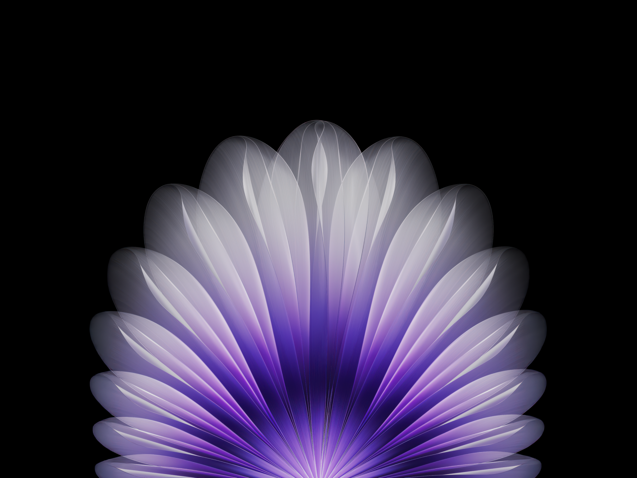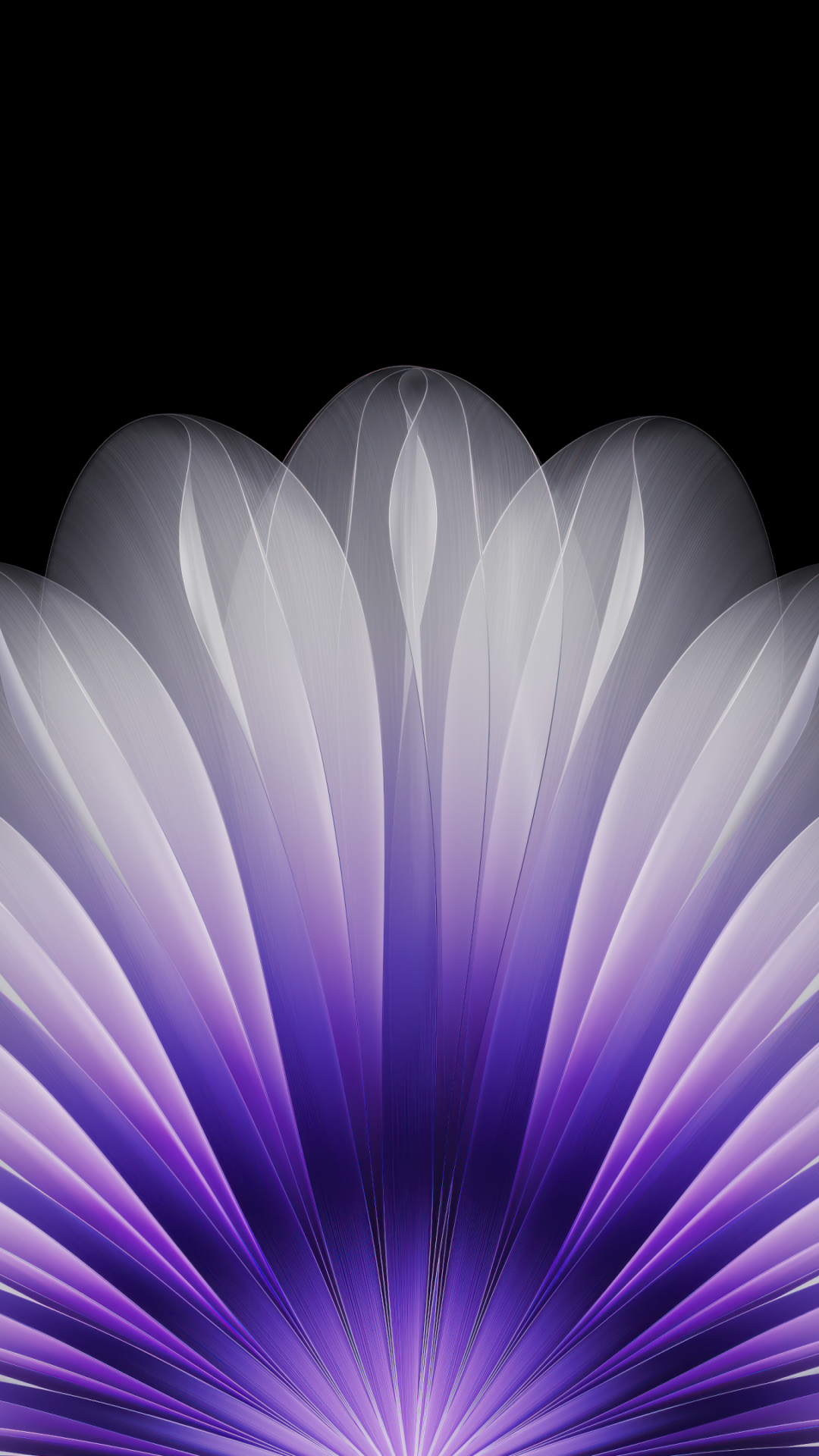 Soft violet and lavender petals fan out in a symmetrical bloom against a pure black background, creating this elegant abstract floral pattern. For AMOLED screens and 4K monitors at 3840x2160.