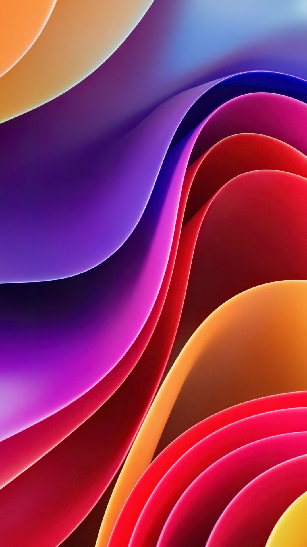 Smooth flowing waves of pink, orange, purple and blue blend together in this fluid 3D render with a satisfying gradient effect. For 4K monit