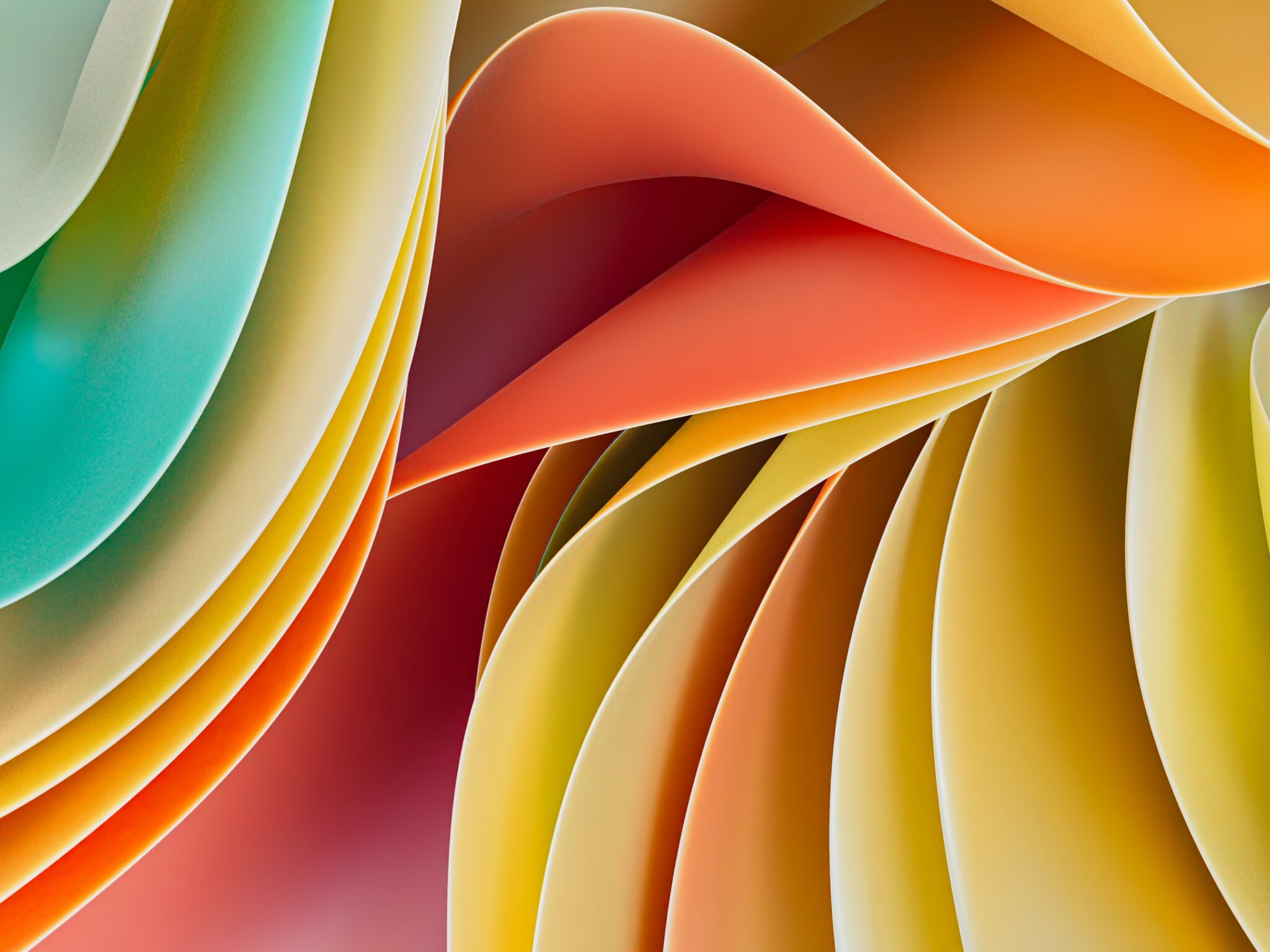 Flowing curved shapes in teal, golden yellow, coral orange and deep rose create this soft 3D abstract bloom effect. For 4K monitors if you want something warm and colorful on your desktop.