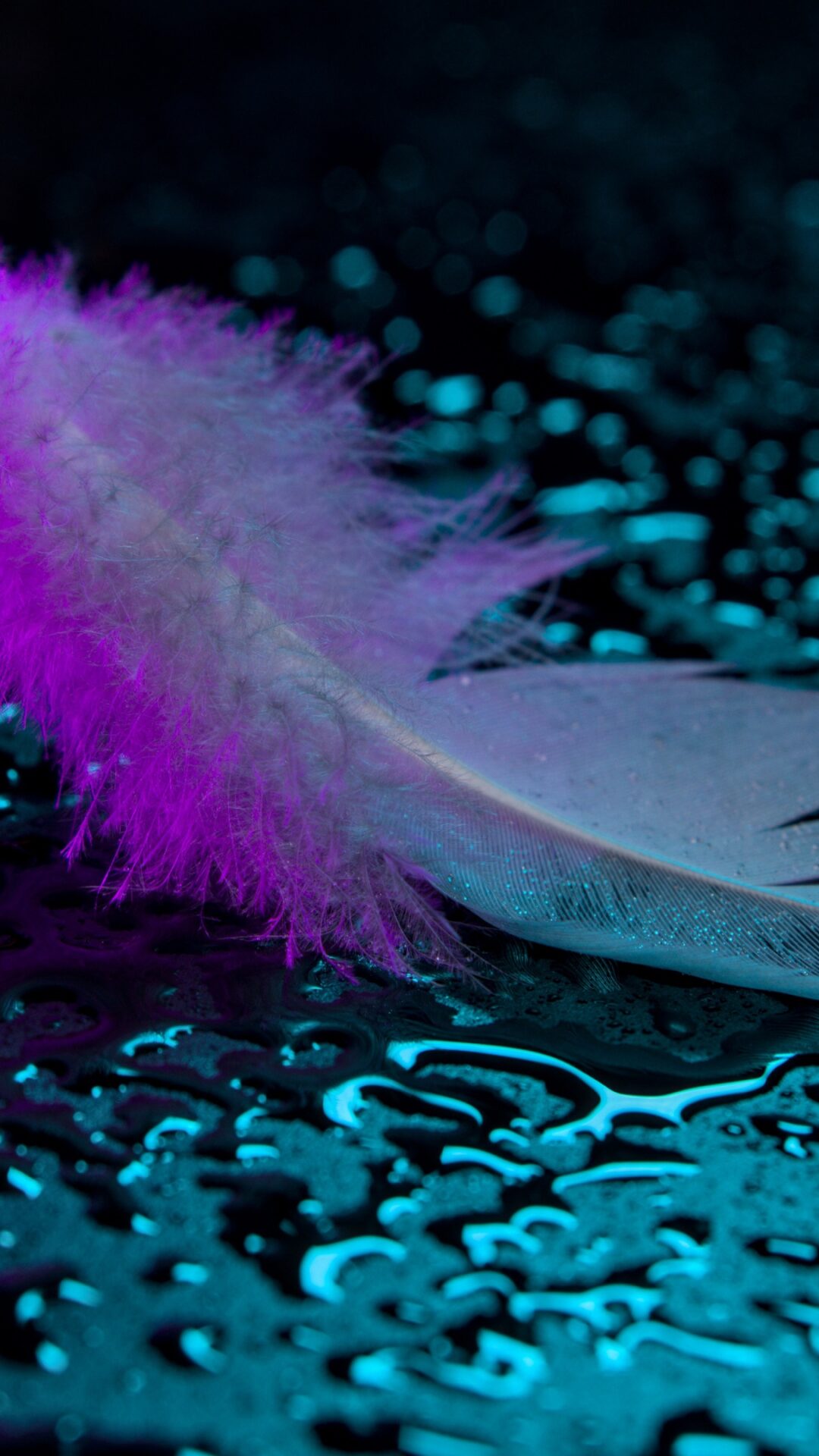 Wet Pavement Feather Desktop | Magenta Teal Reflections wallpaper 4K