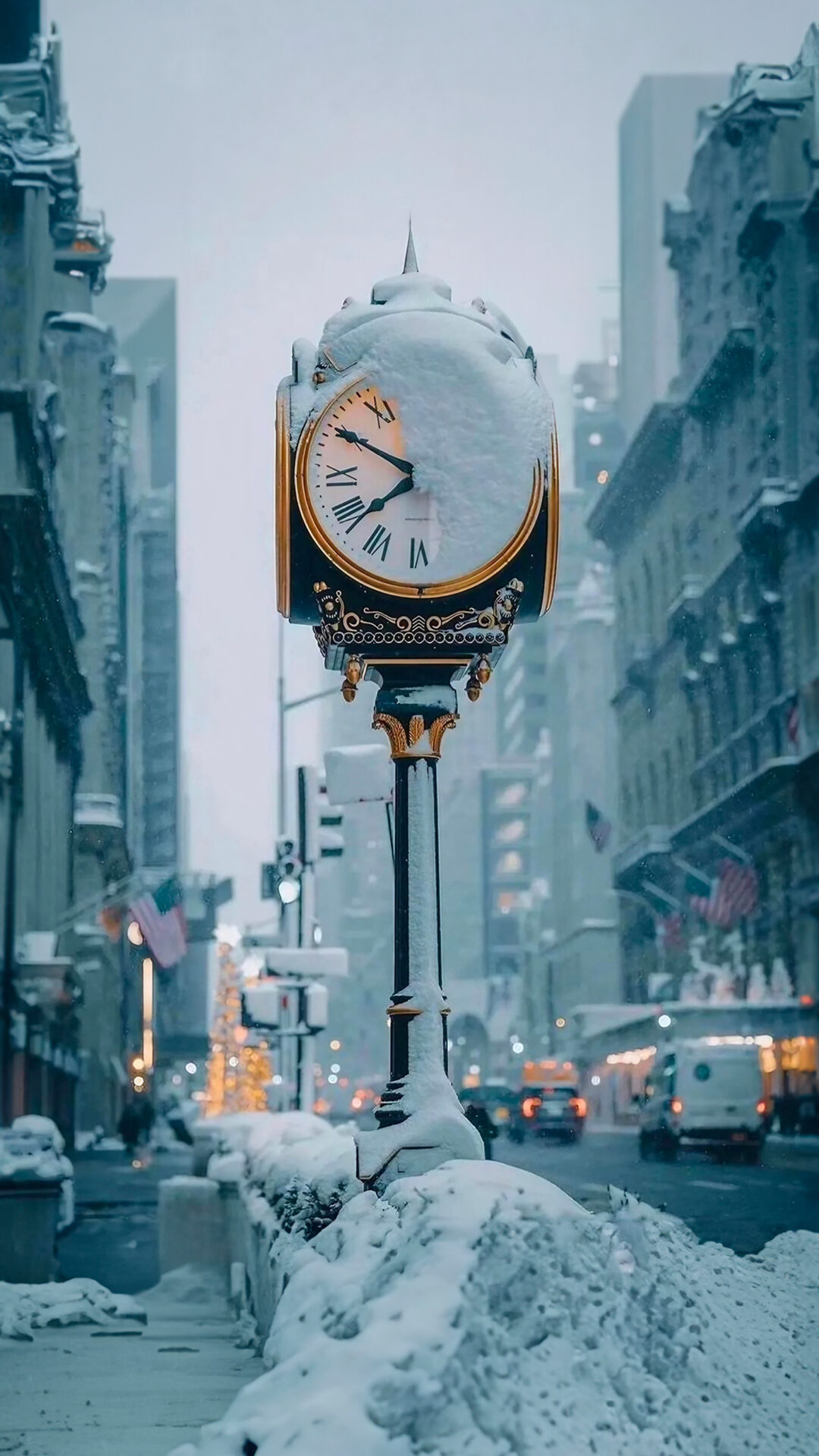 Winter City Street Clock | Snowy iPhone Scene