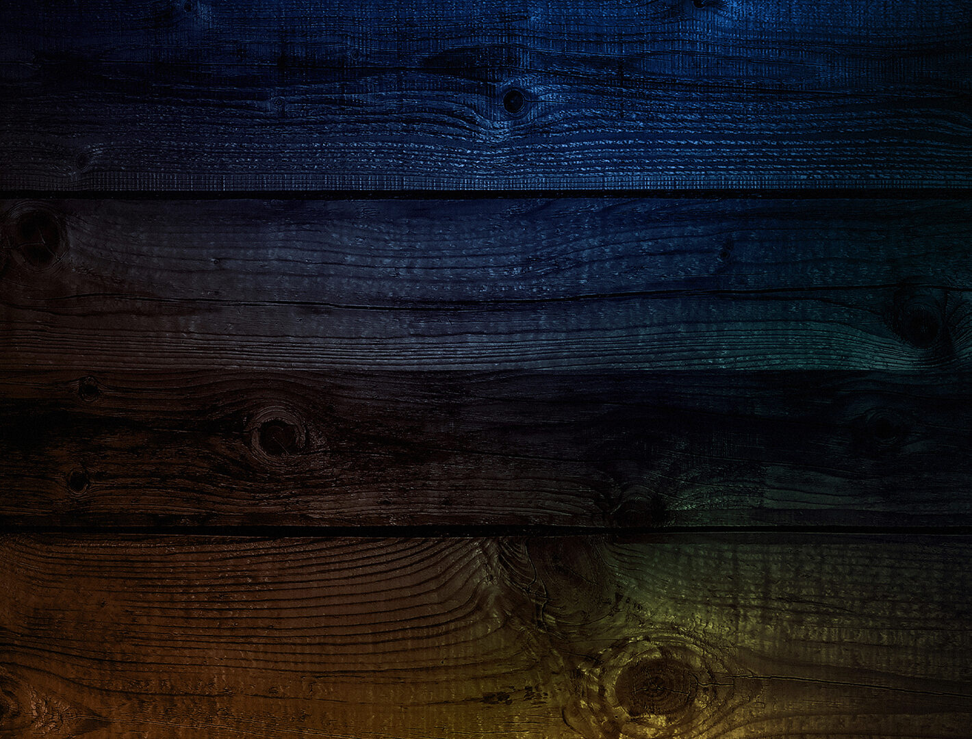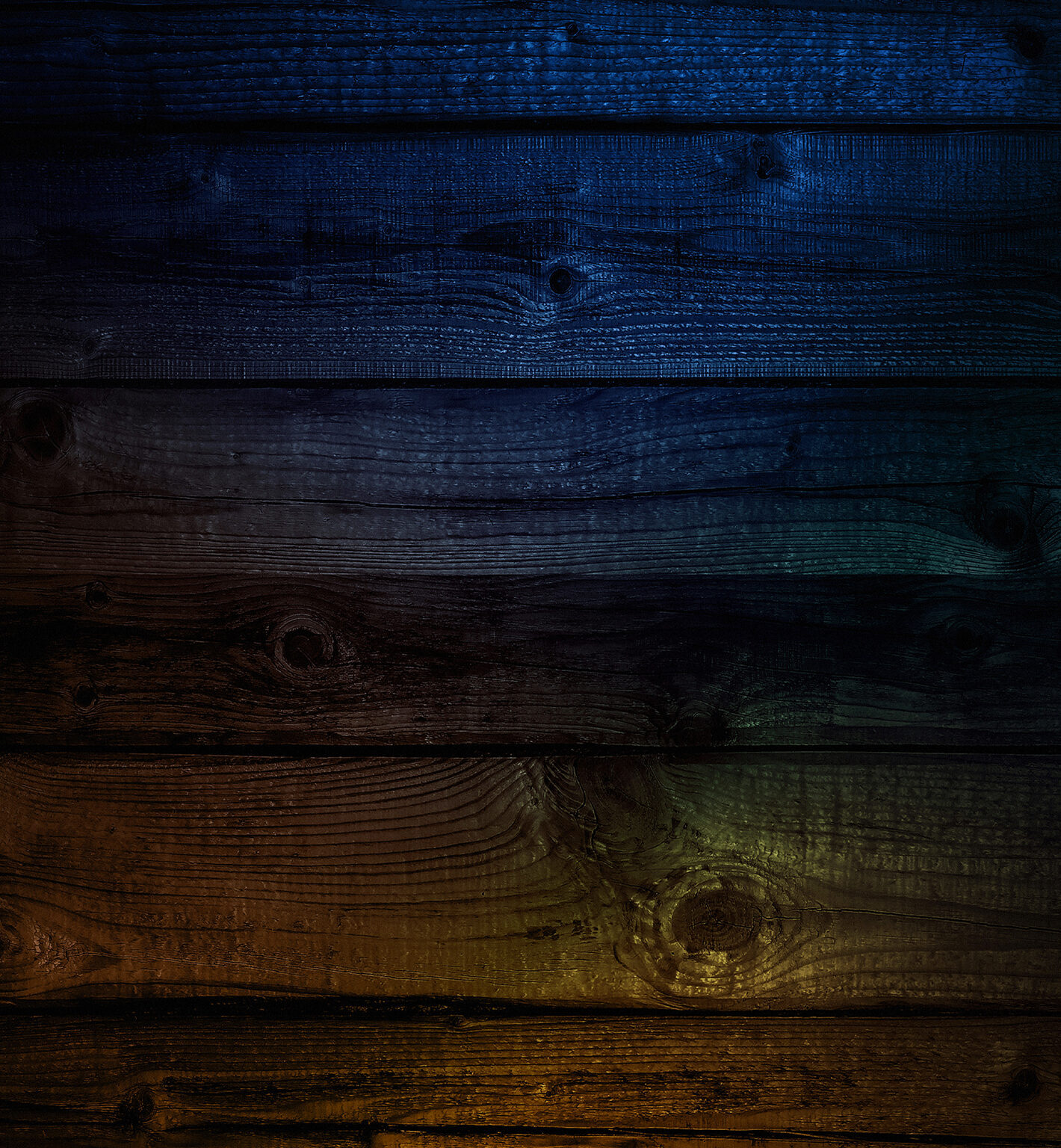 Horizontal wood planks fill the frame, transitioning from dark blue to golden yellow. The wood grain is visible throughout, and light reflec…