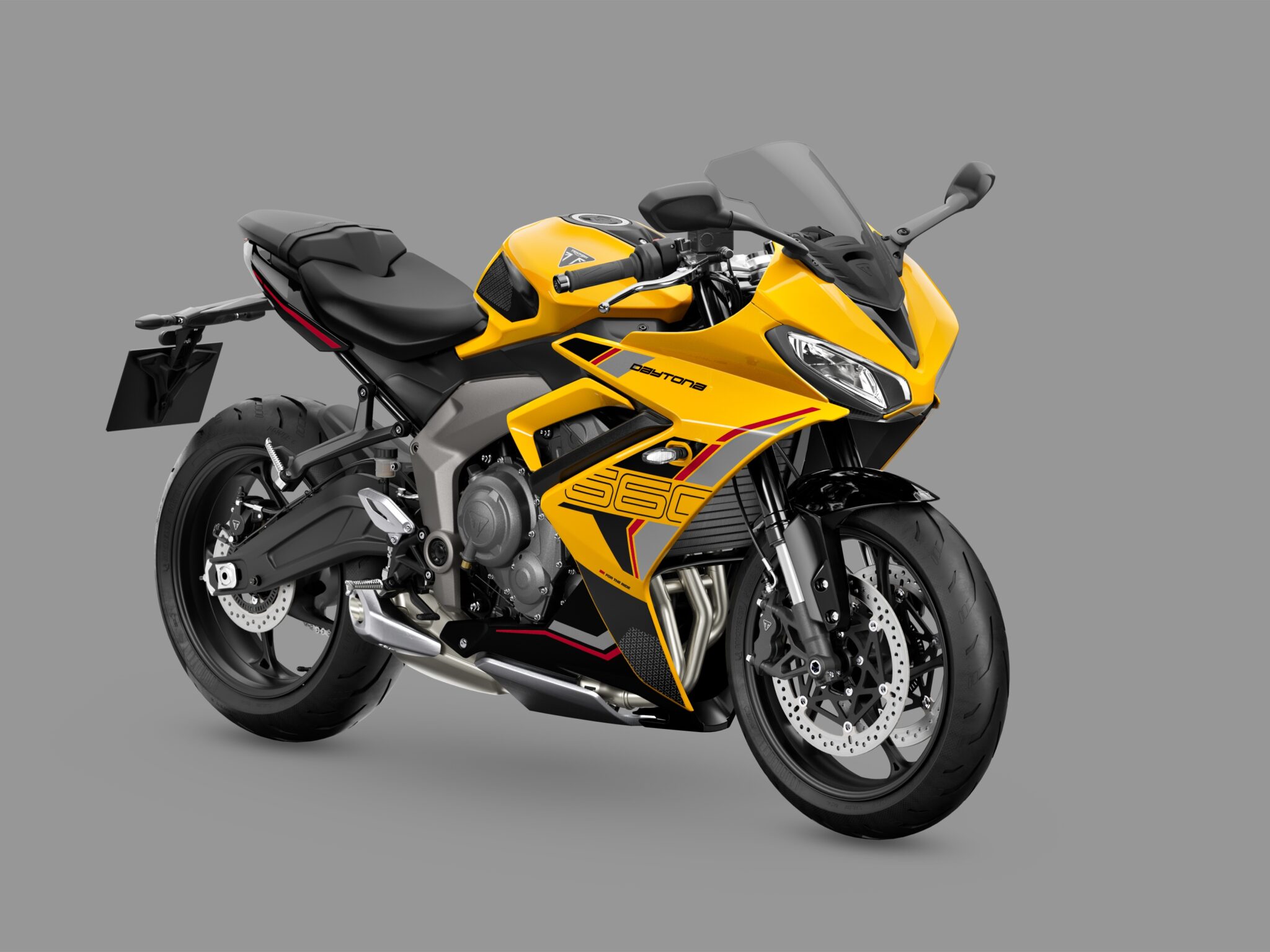 A yellow Honda CBR600RR sport bike is angled against a solid gray background. The matte paint and contrasting black frame create subtle text