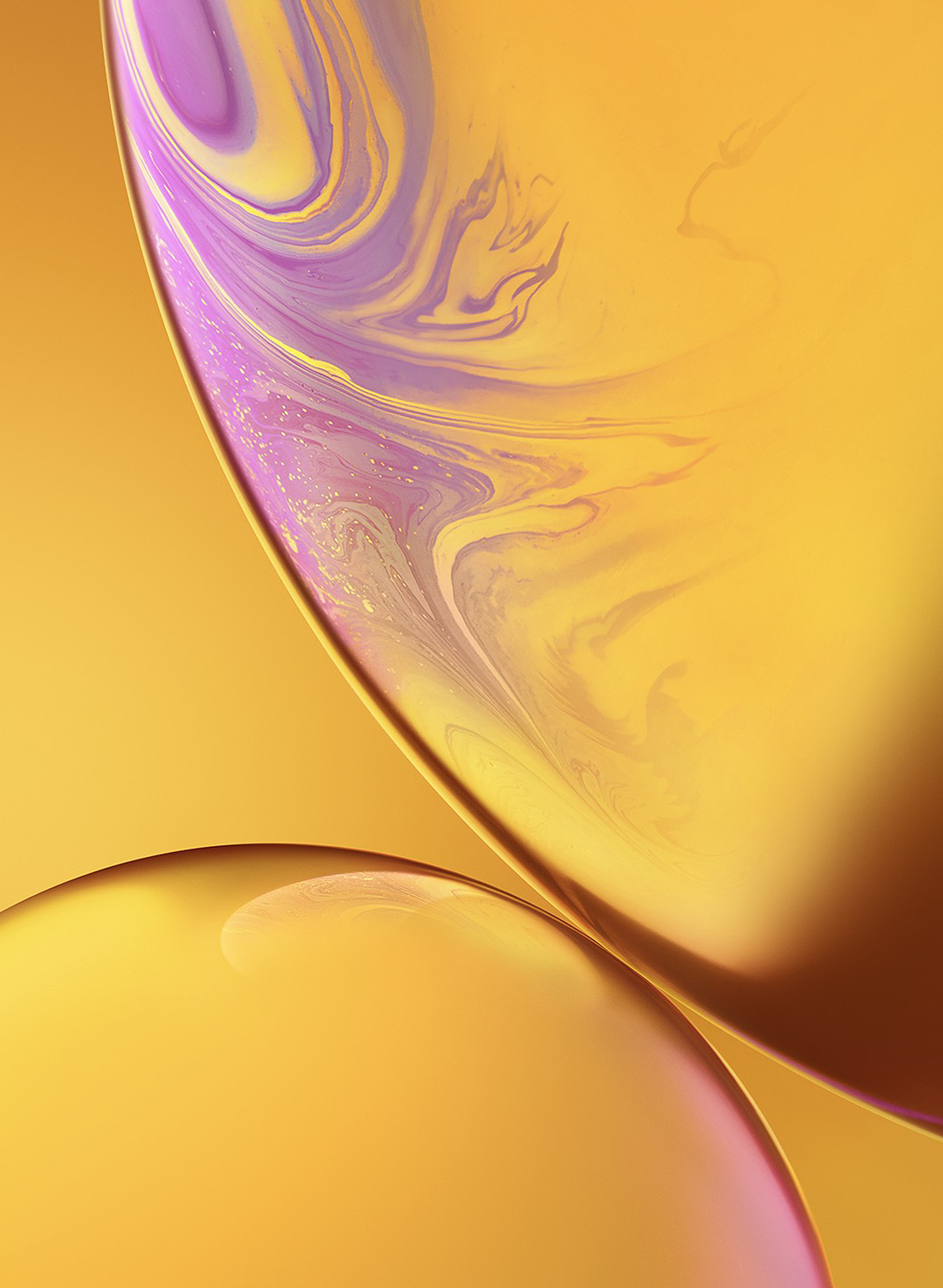 Two overlapping rounded shapes fill the frame, rendered in shades of yellow and pale purple. A smooth, marbled texture creates a subtle sens…